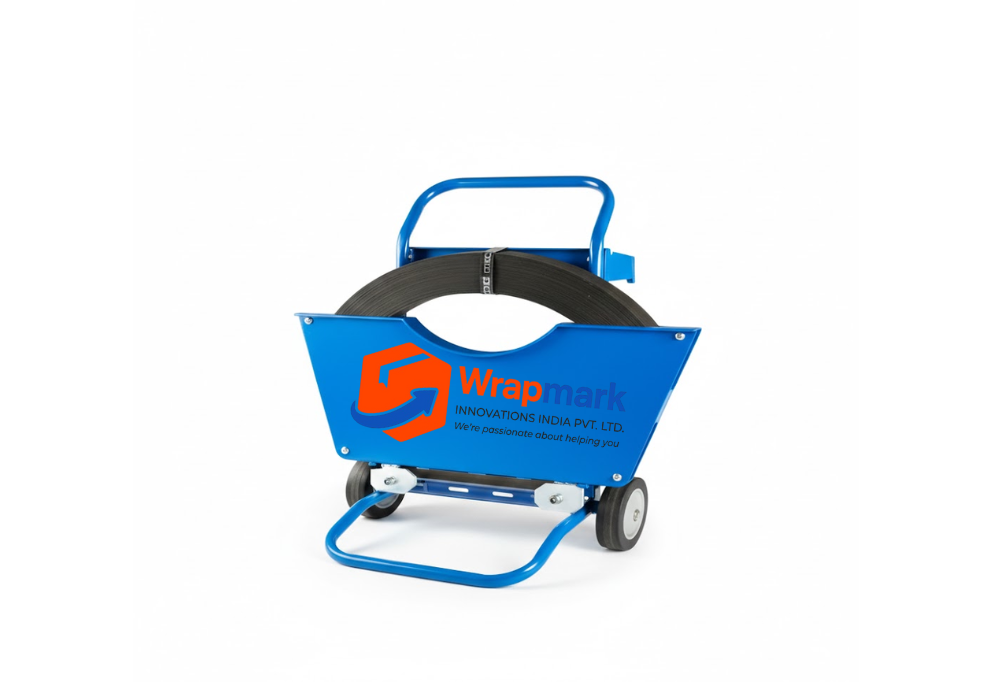 The Wrapmark WMQPF Steel Strap Dispenser is a heavy-duty reel trolley designed for steel strapping with European / simple winding. Built with a strong, stable frame and an extra-large tool compartment, it ensures smooth strapping operations with all essentials easily accessible.