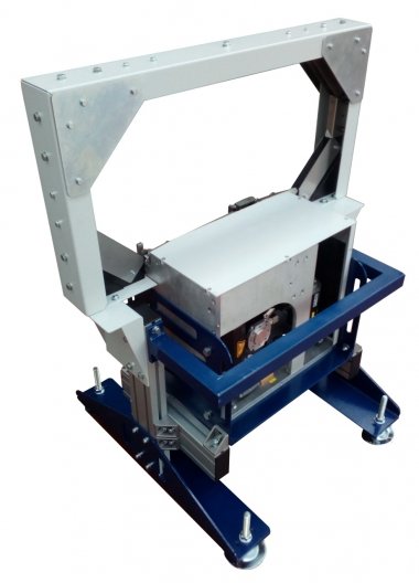 The WMSF 113 M is a strapping machine with a lance where the package or pallet is strapped vertically and sealed at the bottom.